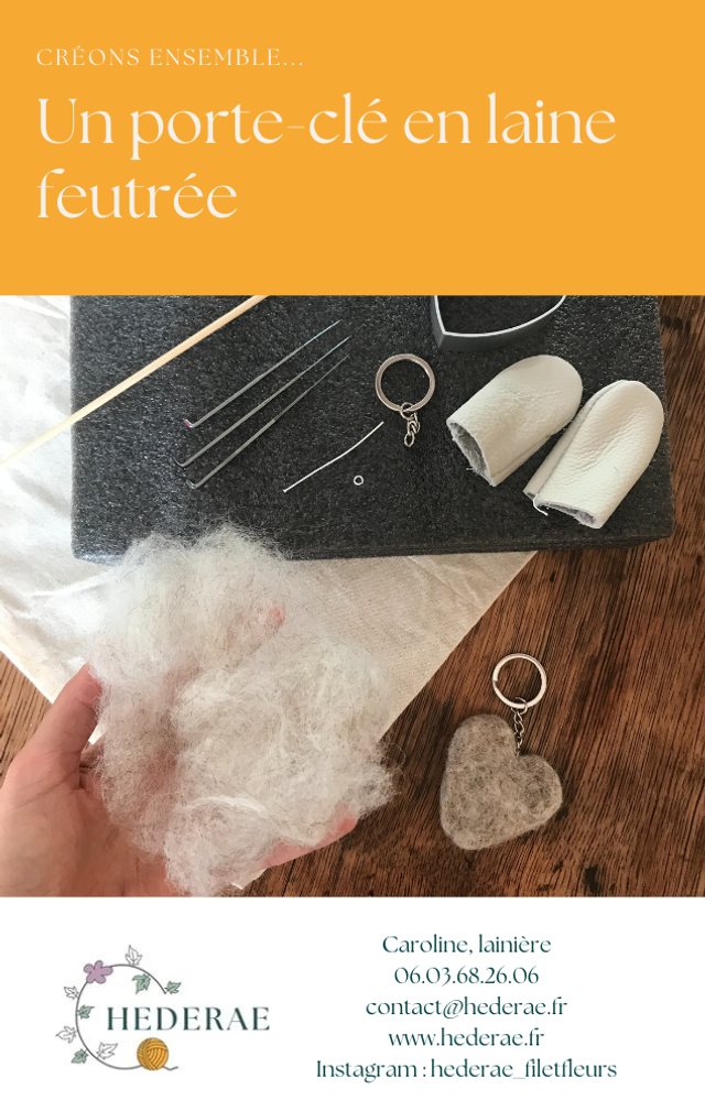 Ce kit vous permet d'apprendre à feutrer de la laine pour en faire un porte-clé coeur.