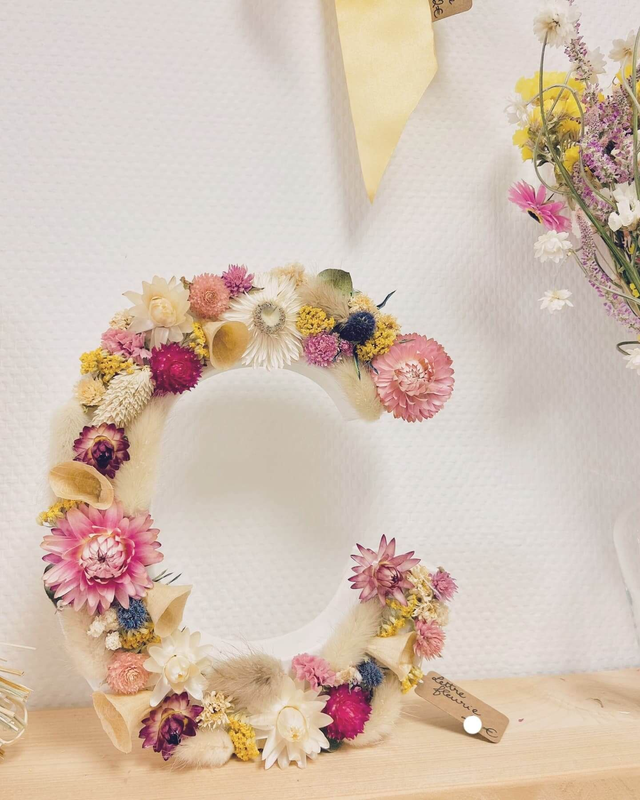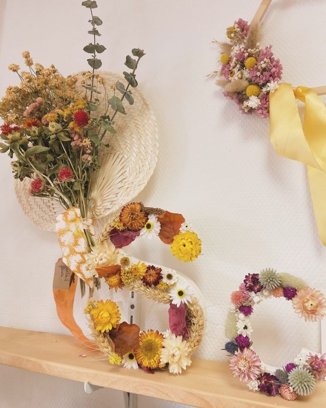 80% des fleurs séchées proviennent de fermes florales françaises. Aussi, de légères variations de couleurs peuvent apparaître au bout de quelques années. Les fleurs stabilisées utilisées proviennent d'Espagne ou d'Italie.